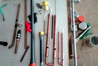 Olivier Di Placido is a french guitarist. During the years he has developed an absolutely unique approach to his instrument, being able to play it like a turntable, a synthesizer or a gamelan orchestra. Interested in discovering all the possibilities of the guitar, including the most hidden ones, Olivier has litterally invented a new and hybrid instrument, with unfixed neck and moving pick-up.” (Flussi festival 2014)